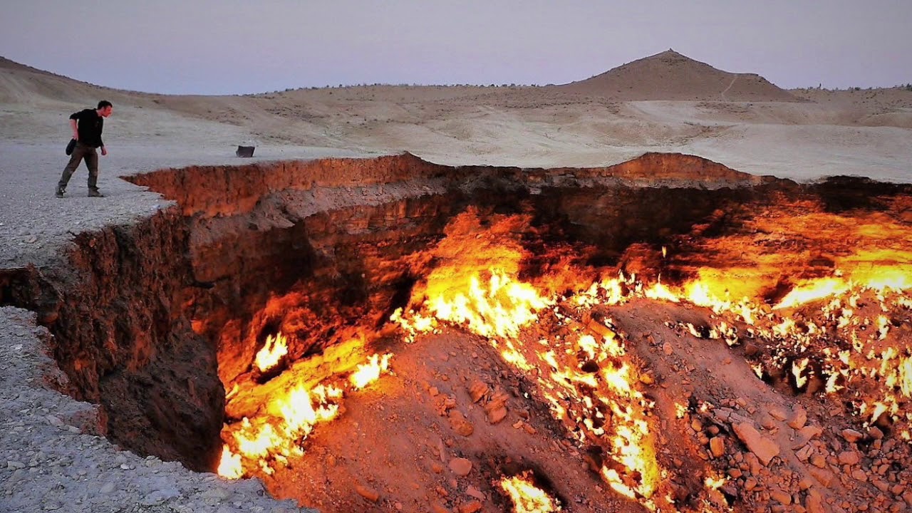 El pozo de Darvaza, también conocido como “La Puerta del Infierno”, es un cráter de gas natural en Turkmenistán que ha estado ardiendo desde 1971. El pozo fue creado por accidente durante una exploración de gas y, desde entonces, ha sido una atracción turística popular.